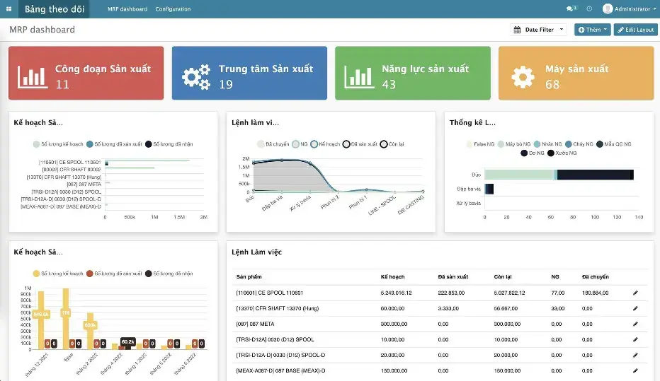Cung cấp công cụ phân tích mạnh mẽ, giúp doanh nghiệp theo dõi hiệu suất, đánh giá tiến độ và hiệu quả của từng quy trình, từ đó có những điều chỉnh kịp thời để cải thiện hiệu quả sản xuất.