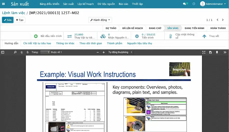 Ngay khi tạo BOM và quy trình sản xuất, hệ thống có thể tính toán giá thành sản xuất lý thuyết, cho phép so sánh nó với giá thành sản xuất thực tế sau khi thực hiện lệnh sản xuất.