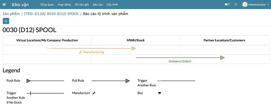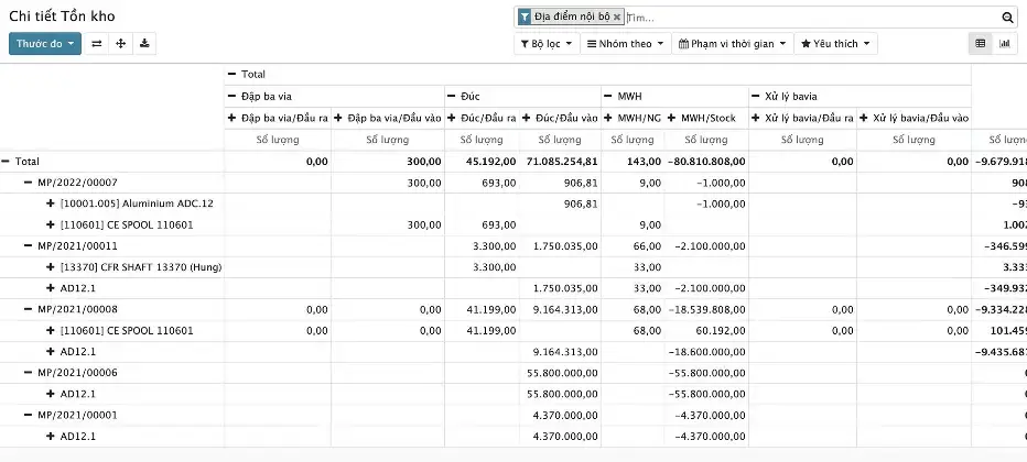 - Báo cáo chi tiết sản xuất của 1 lệnh sản xuất