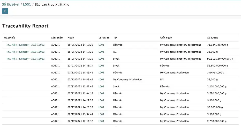 - Báo cáo truy vết nguồn gốc chi tiết
