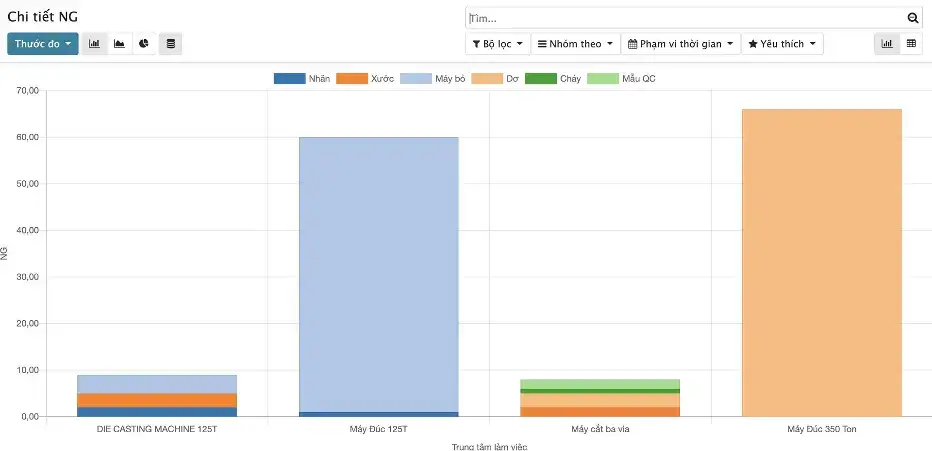 - Báo cáo động về hàng lỗi (NG) cho phép phân tích đa chiều