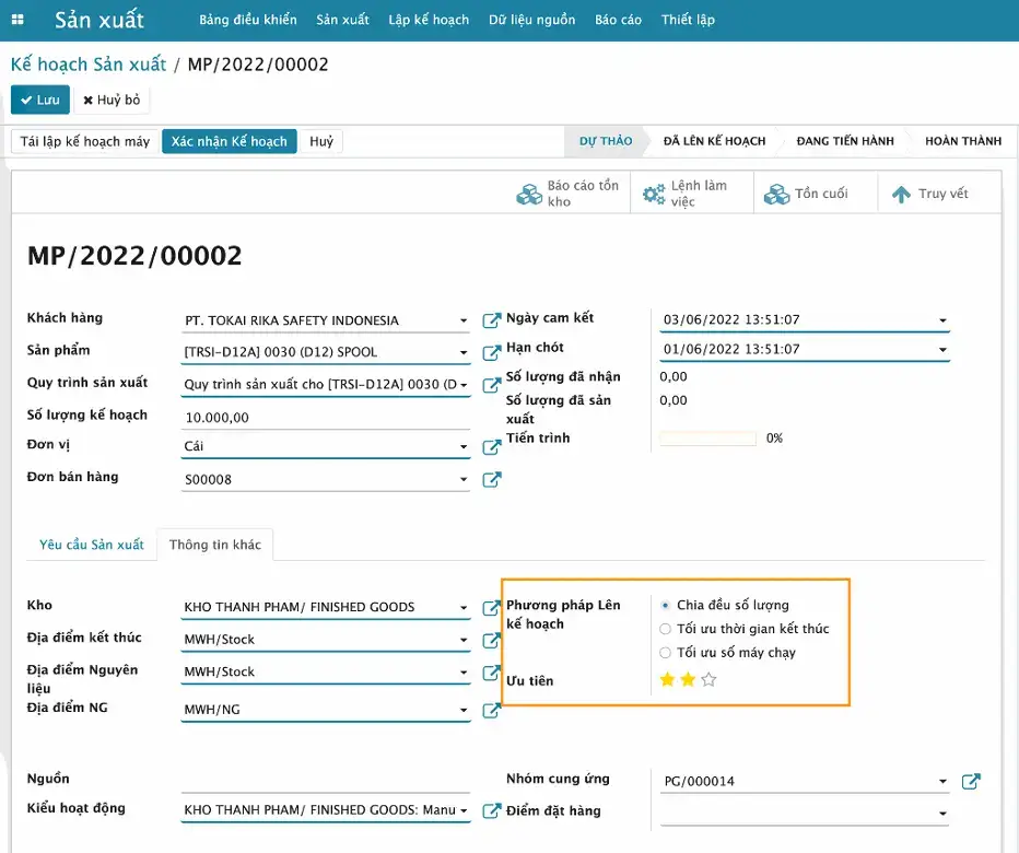 Chủ động và linh hoạt trong lập kế hoạch sản xuất dựa trên các nguồn lực mà nhà máy đang có. Đưa ra kế hoạch chạy máy chi tiết tới từng máy và lịch sản xuất dự kiến, tính toán thời gian hoàn thành ngay từ lúc lập kế hoạch.